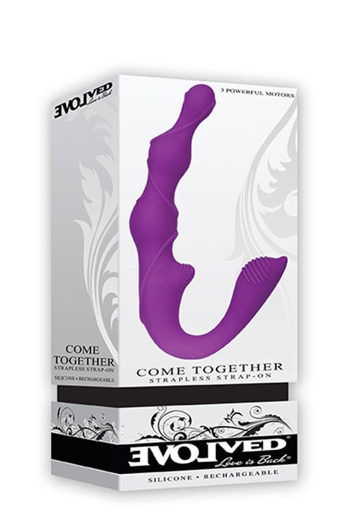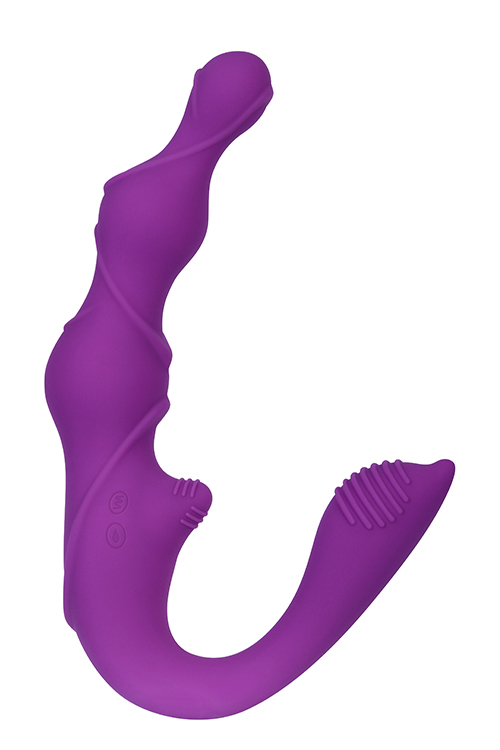 This strapless strap-on is specially designed for lovers looking for a creative alternative to the traditional harness. A unique dual vibrator with three separate motors, it offers many hands-free options for penetration and stimulation of all three major erogenous zones, with separate clitoral motor, ribbed G-spot tip, and graduated anal options. Share your pleasure on every level imaginable with no elastics or buckles in sight! Six different motor functions let you both customize the experience, and bath time play is a joy as this toy is completely submersible. Clean your toy with toy cleaner and a warm water rinse.Strapless strap-onStimulation for both partners involvedPowerful dual pronged vibratorThree separate motors, with 6 vibration choicesMade from luxurious siliconeDimensions:12,7 cm insertable length for G-spot tipped shaft and a 3,5 cm diameter (5.0 inch x 1.4 inch)15,2 cm insertable length for rounded shaft and a 2,5-4 cm diameter (6.0 inch x 0.9-1.6 inch)Pleasure ridges target the G-spotSeparate motor in G-spot shaft with pleasure ridges and clit stimulatorSeparate motor in round shaft for vaginal or anal stimulation or penetrationLatex & Phthalate freeWaterproof and fully submersibleRechargeable, USB cable provided