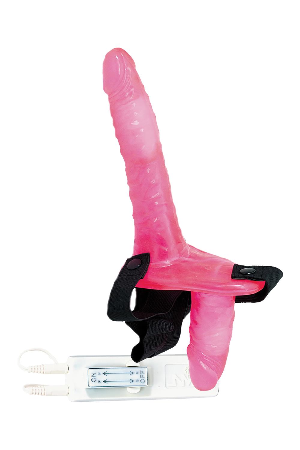 With independently controlled device for double penis. Comes with super soft stretchable harness. Multispeed. Phthalate free.